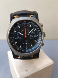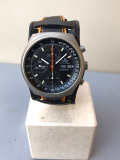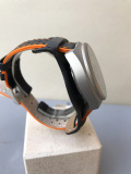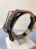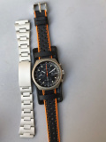 - Band; Racing Lederband schwarz mit oranger Naht und Military Schweisschutz, zusätzliches Stahlarmband.